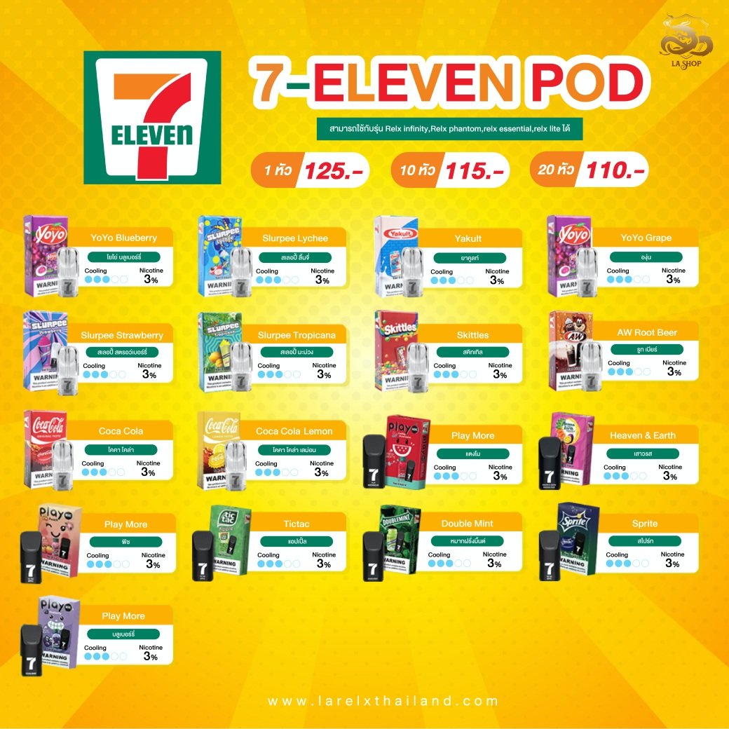 PS. น้ำยา 7-11 สามารถใช้กับเครื่อง Relx infinity, phantom, lite, essential และ Infy ได้