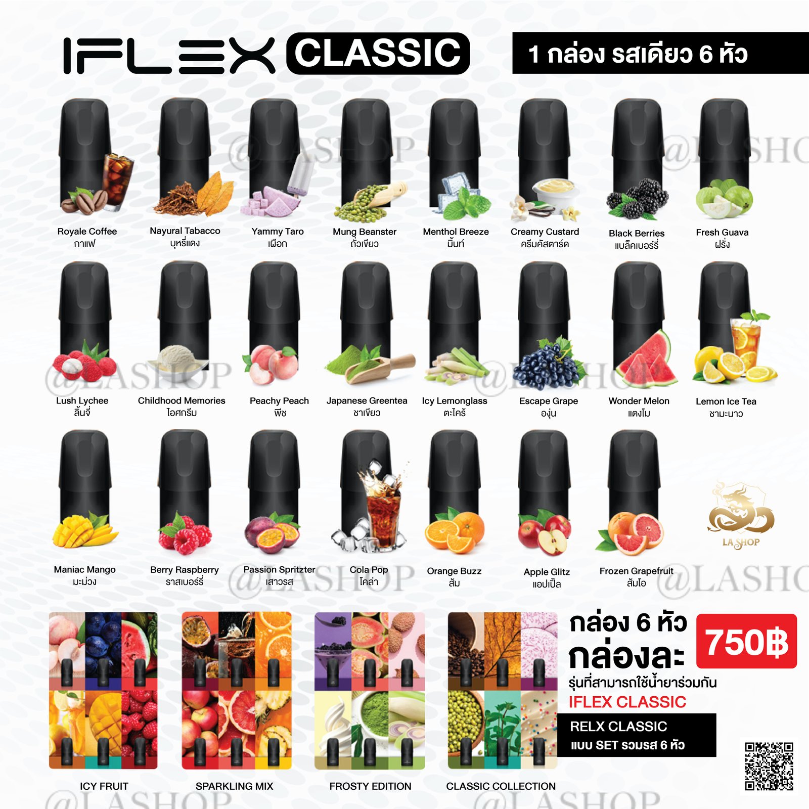 IFLEX Classic กล่อง 6 หัว 750 บาท พร้อมส่งทุก 23 รสชาติ